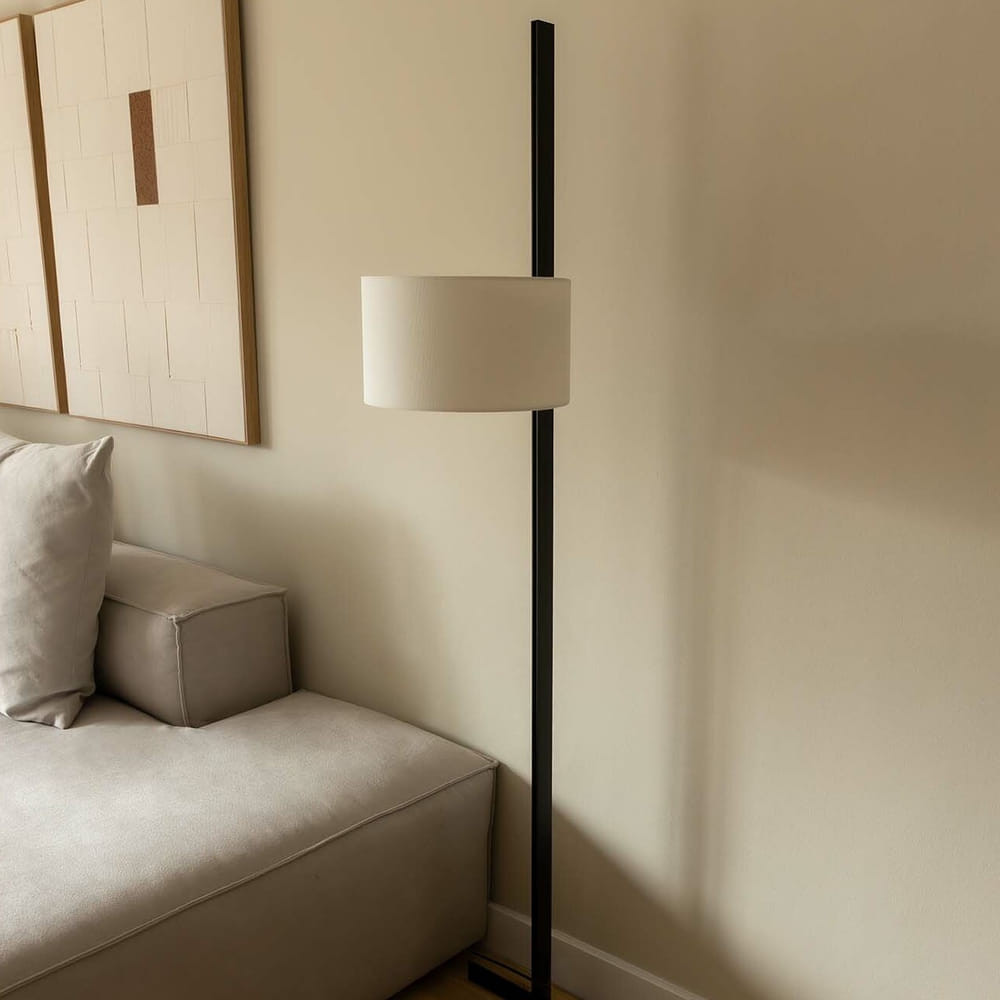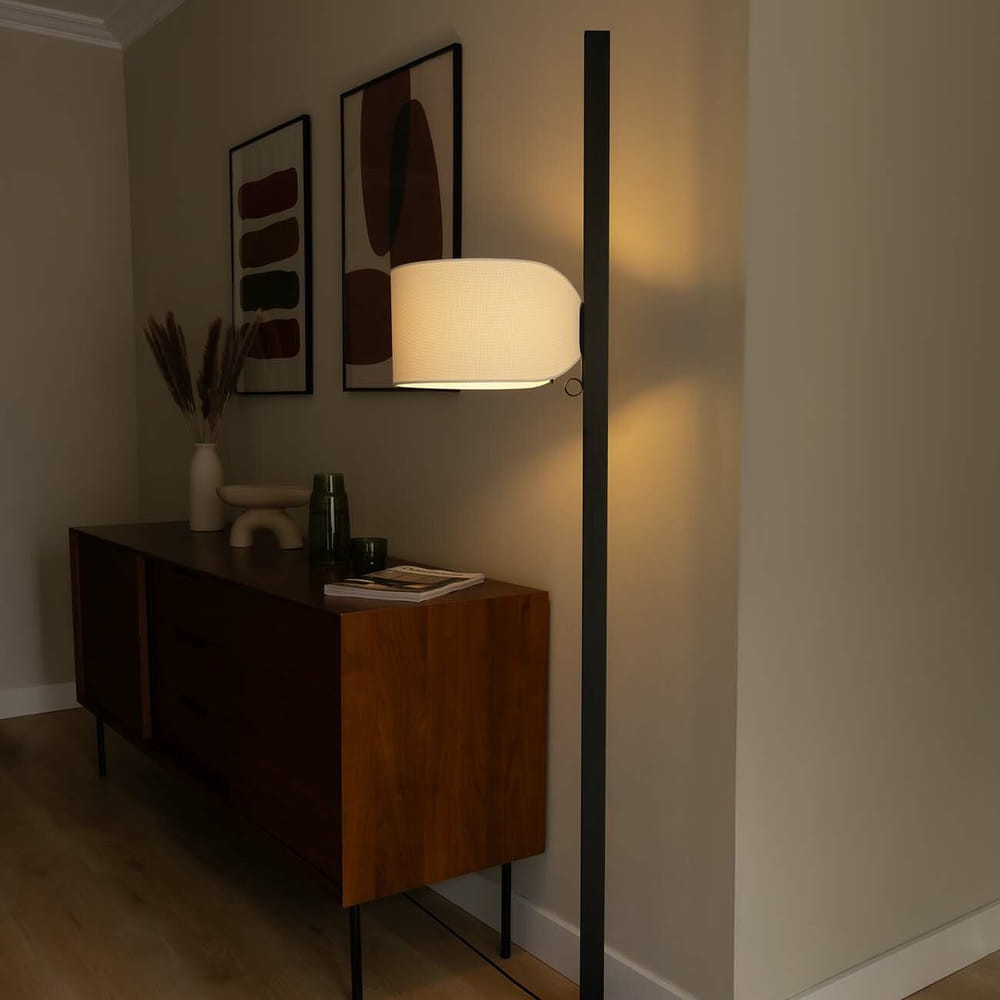 FARO STAND UP Lámpara de Pie Negra y Lino Natural