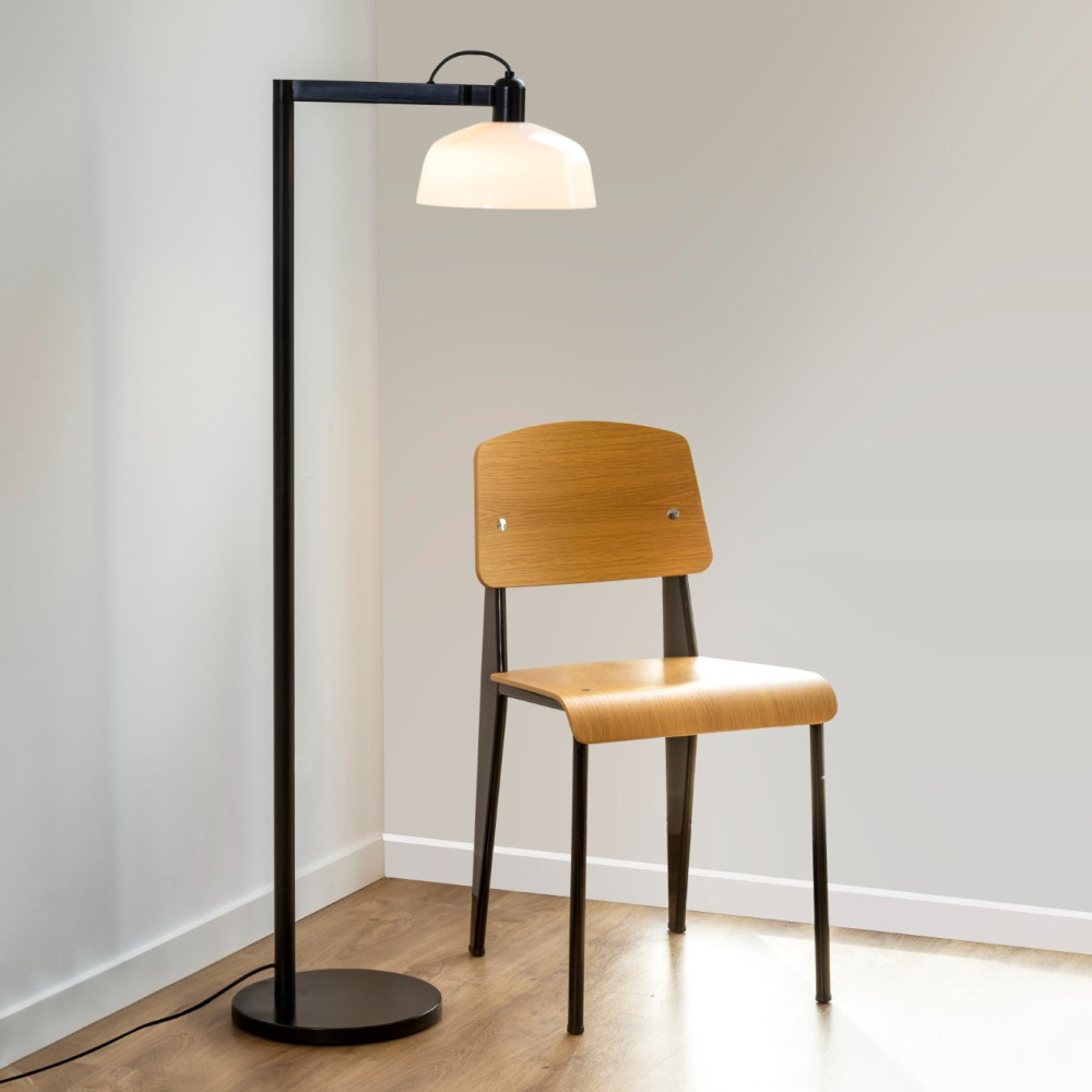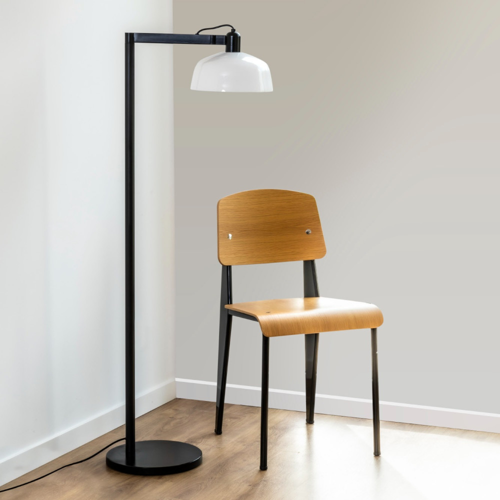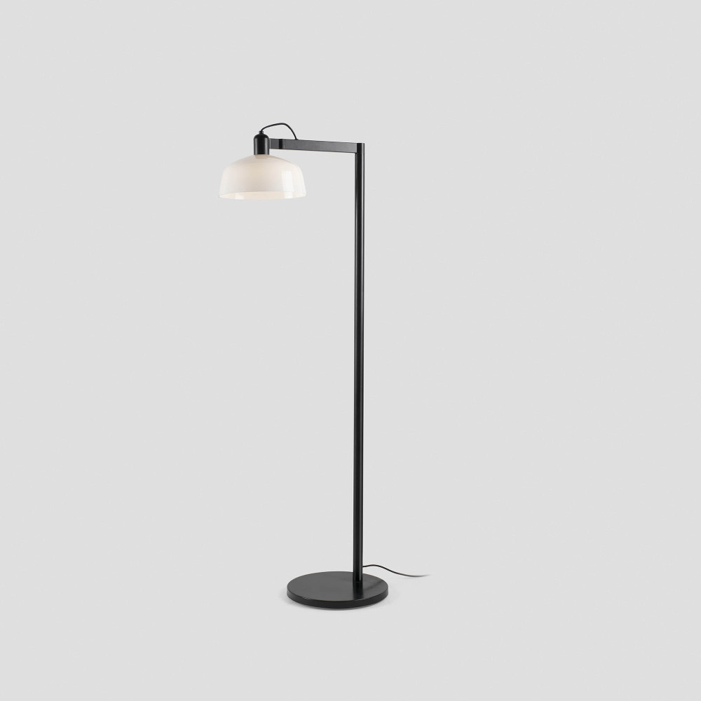 TATAWIN es una familia de luminarias diseñadas por Adolfo Abejón. La forma de la pantalla recuerda a la parte superior de las características viviendas de Tataouine, ciudad situada al sureste de Túnez. Esta lámpara de pie de brazo giratorio, tiene la estructura metálica en color negro y pantalla de cristal opal blanco.
