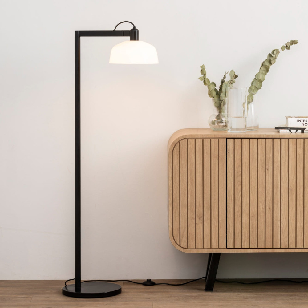 TATAWIN Pie de Salón Negro Satinado Pantalla Blanca 1xE27