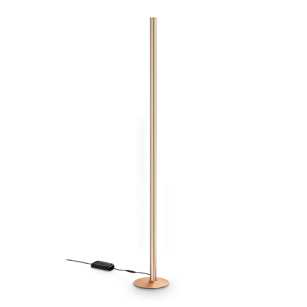 Lámpara de pie de 190 cm regulable en intensidad, acabado cobre cepillado. 50W, 3310 lm, 3000K, CRI90