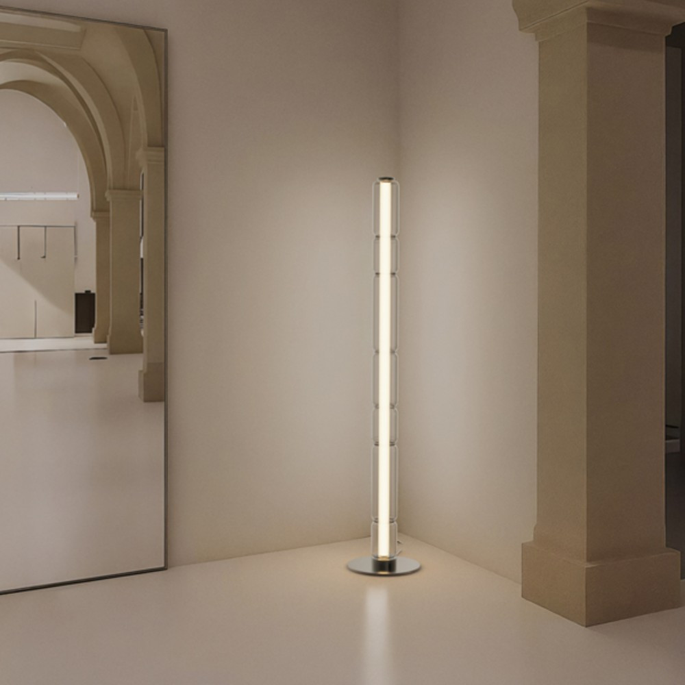 Lámpara de pie LED vidrio trasnparente y níquel negro 17W 1100lm 2700k.