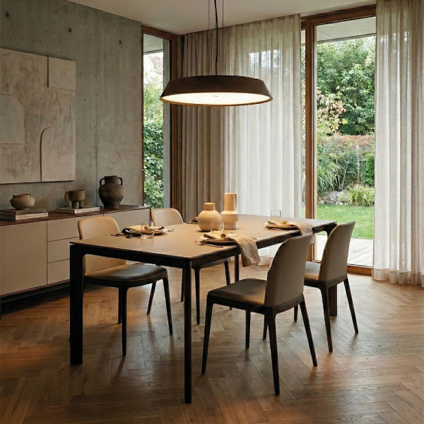 Cora combina diseño contemporáneo y materiales naturales para aportar calidez y elegancia a cualquier espacio. Fabricada en madera natural con acabado en roble y negro texturizado, esta luminaria destaca por su estética limpia y moderna, ideal para salones, comedores o proyectos contract.