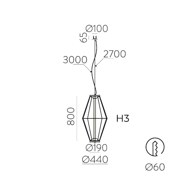 ACB TOTEM H3 LED Ø440 Colgante Empotrable Negro