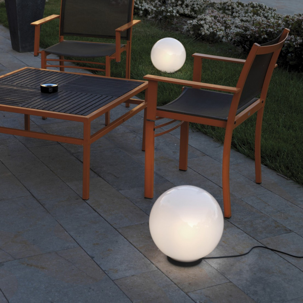 La familia de luminarias de suelo y sobremesa Glou cuenta con las lámparas de cuatro diferentes diámetros 20cm, 25cm, 30cm y 40cm. Se enchufan por el cable, cuentan con el IP44 y están fabricadas en mezcla de poliamida y metacrilato opaco. Da opción de escoger entre varios tipos de fuentes de luz. Ideal para iluminar patios, balcones y zonas comunes de exterior.