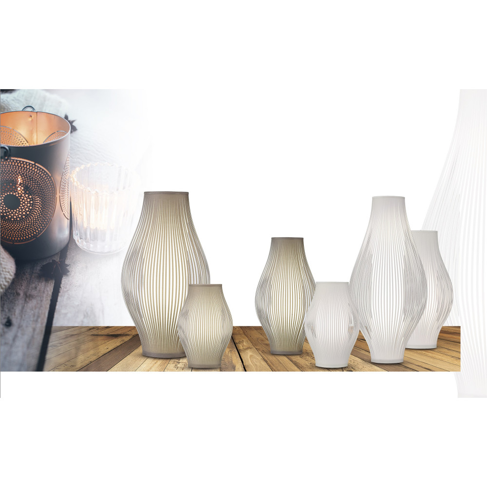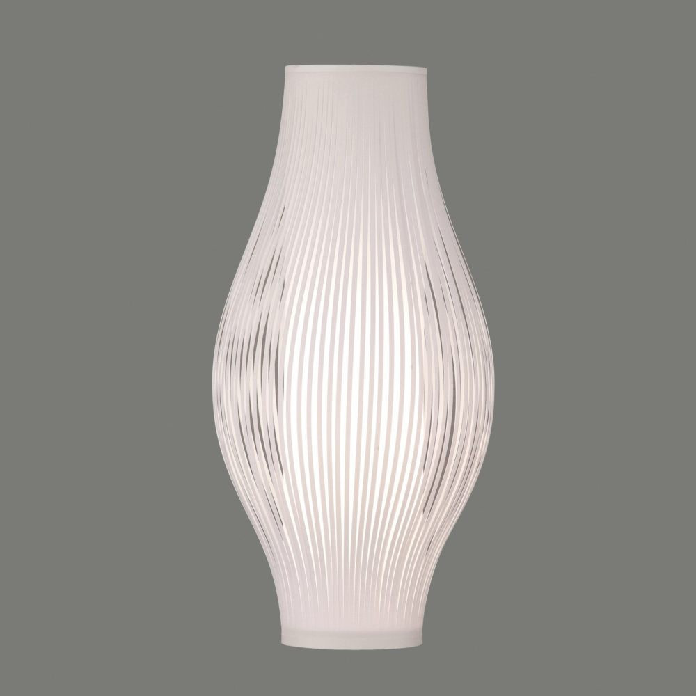 MIRTA es una lámpara sobremesa para iluminación interior. Fabricada en textil y acrílico con acabado en blanco y níquel satinado.