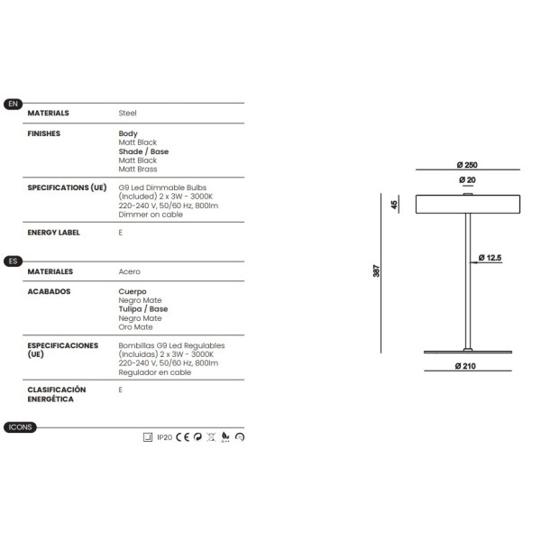 Sobremesa Levels 1 Body Ø320mm Verde LED 11.8W SW 2700-3000-4000K 3 STEPS DIMMING 971lm