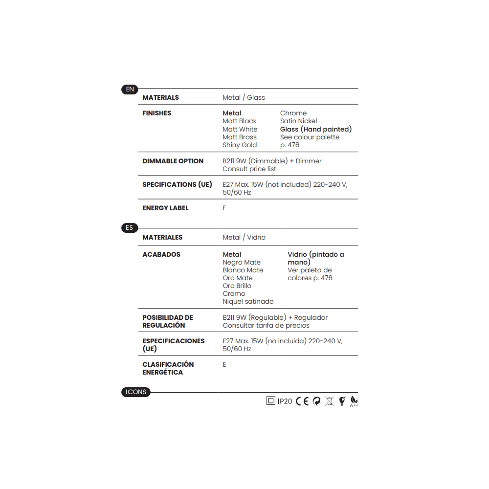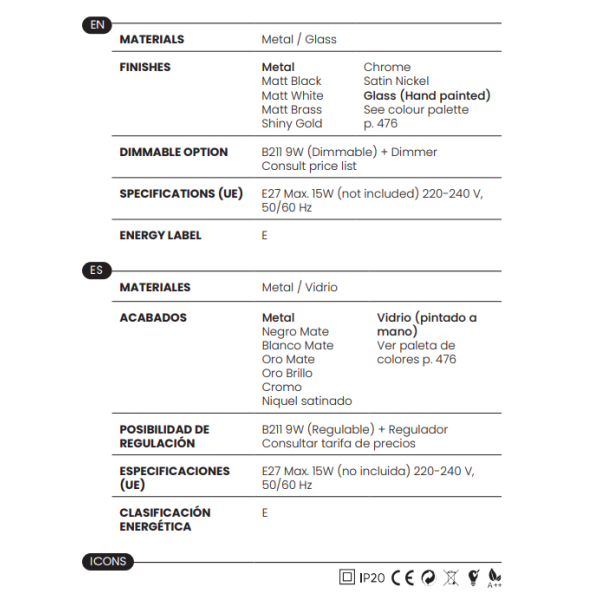 - 1 x E27 (No incl.)