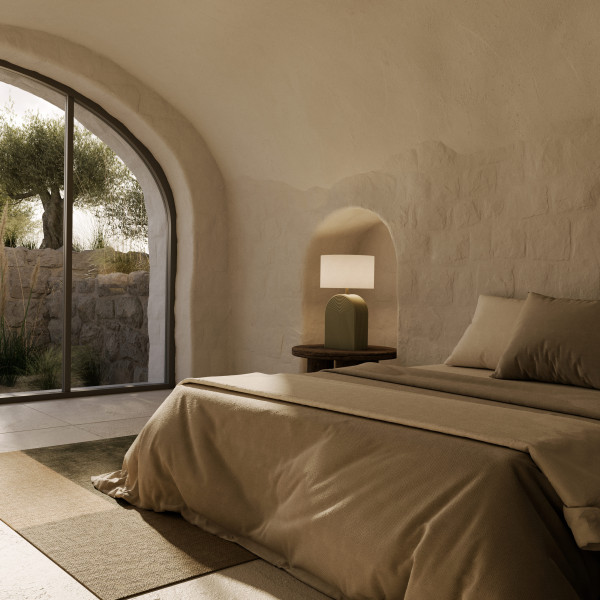 LOPO está concebida para ofrecer una iluminación ambiental cálida en mesitas de noche, consolas o mesas auxiliares, convirtiéndose además en un elemento decorativo con gran presencia visual.