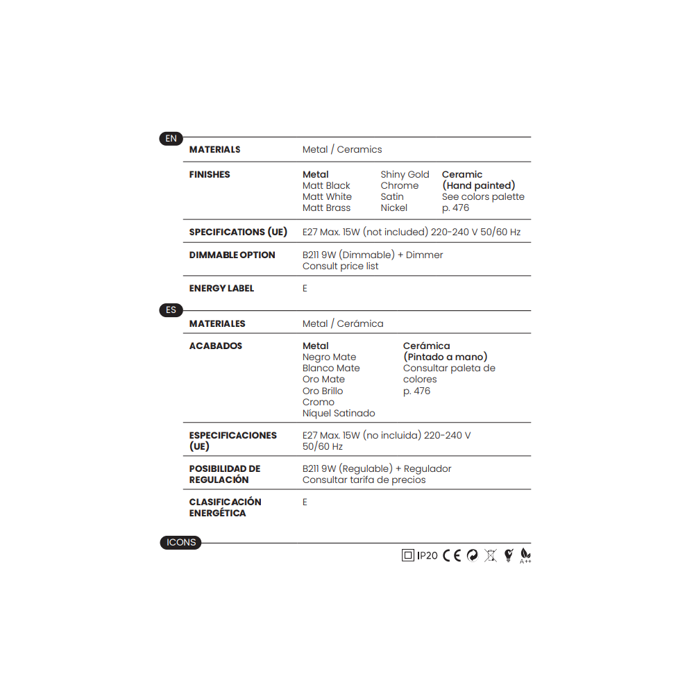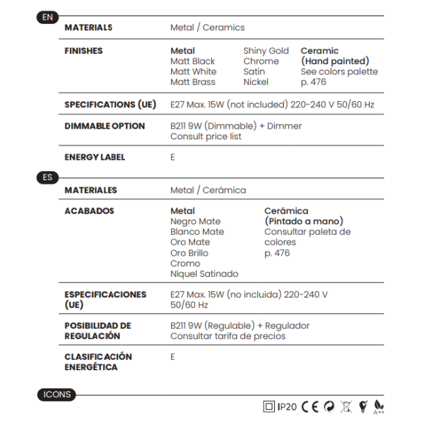 - 1 x E27 (No incl.)
