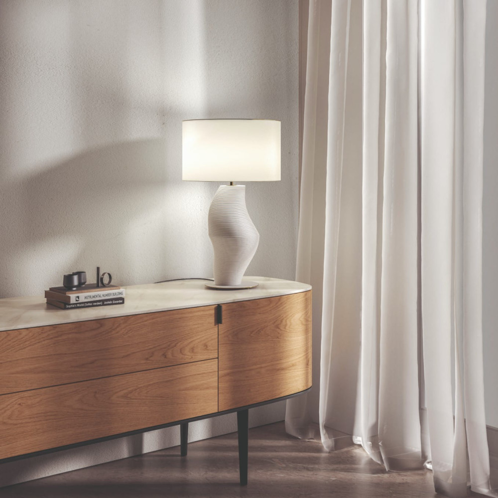 LUET está concebida para proporcionar una iluminación ambiental cálida en mesitas de noche, consolas o mesas auxiliares, convirtiéndose al mismo tiempo en un elemento decorativo con una presencia sutil y refinada.
