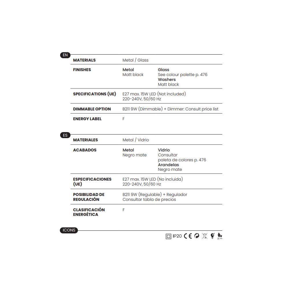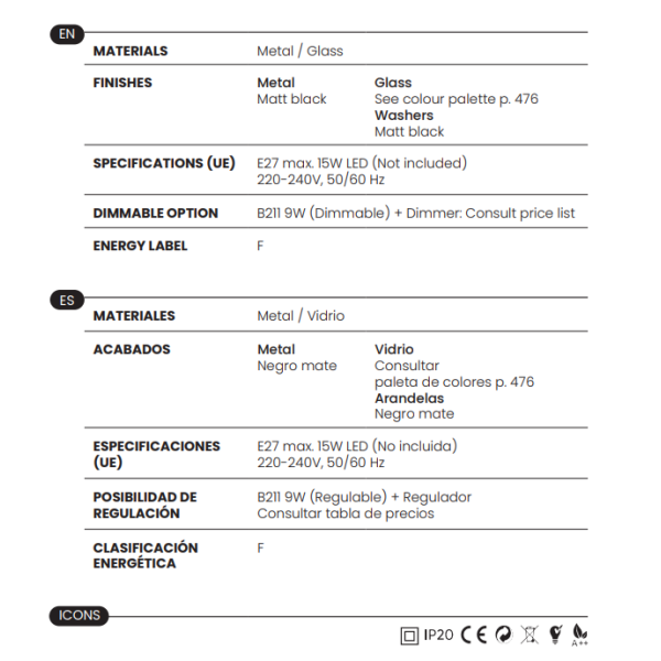 - 1 x E27 (No incl.)