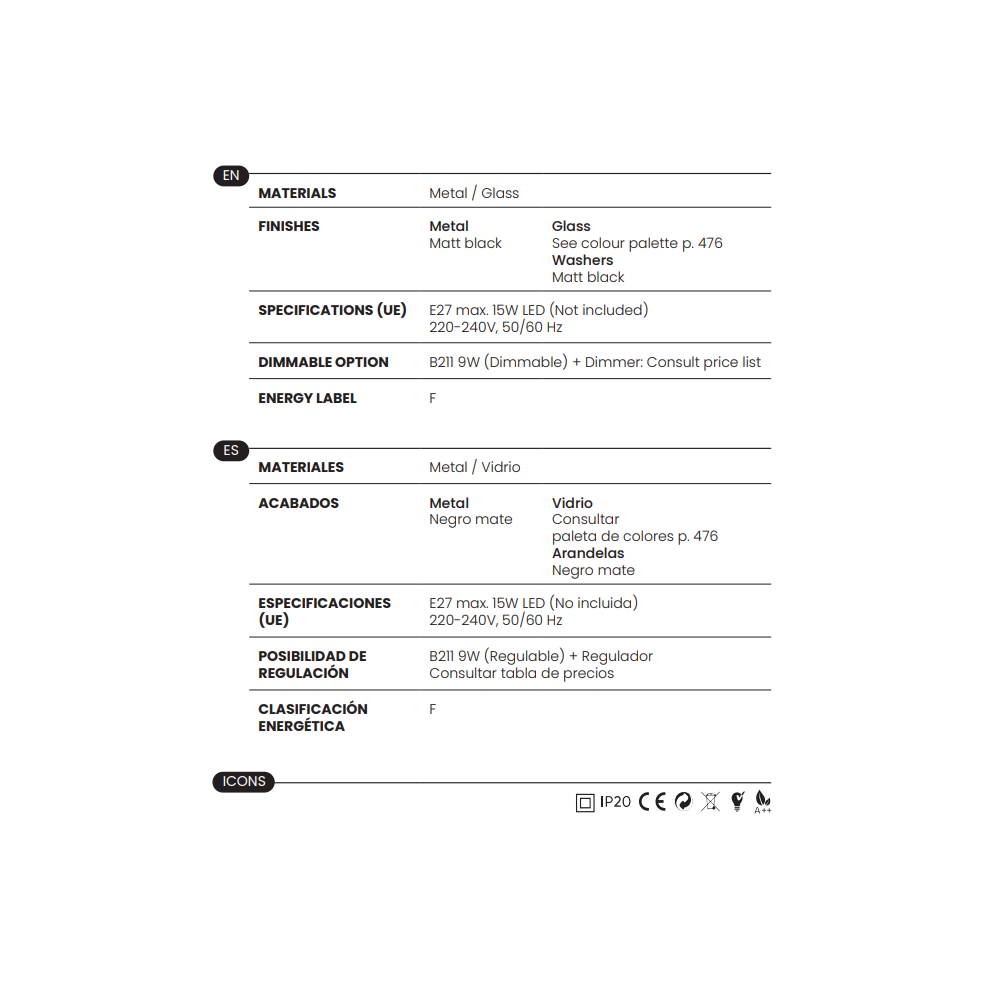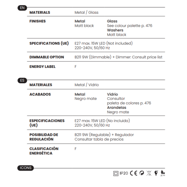 - 1 x E27 (No incl.)