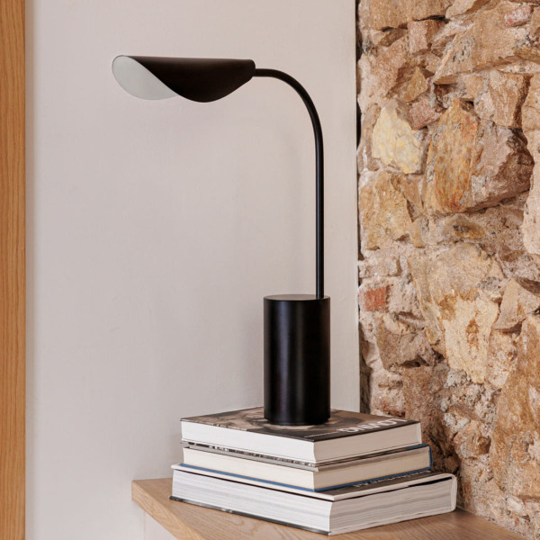 Lámpara de sobremesa fabricada en acero acabado en negro mate.