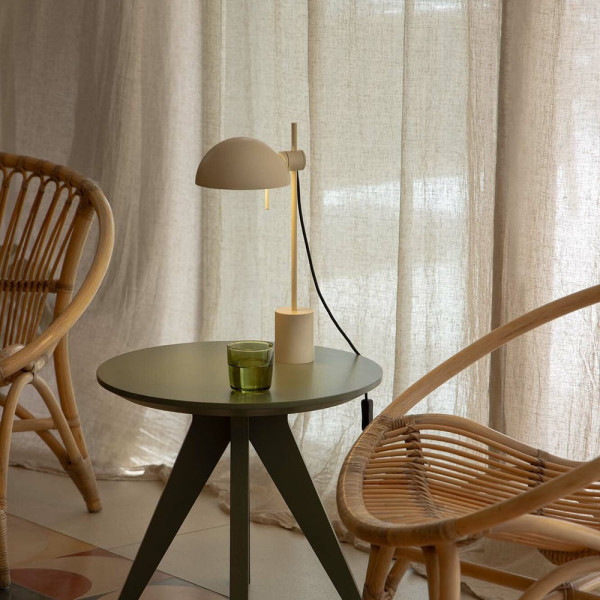 La familia MATILDA, diseñada por Faro Lab, hace gala de un minimalismo geométrico que le permite integrarse en cualquier espacio. Su sistema de pantalla giratoria y su regulación en altura ofrece gran variedad de efectos de luz, convirtiéndola en una colección multifuncional. Esta lámpara de mesa en color beige se caracteriza por sus formas puras y geométricas.