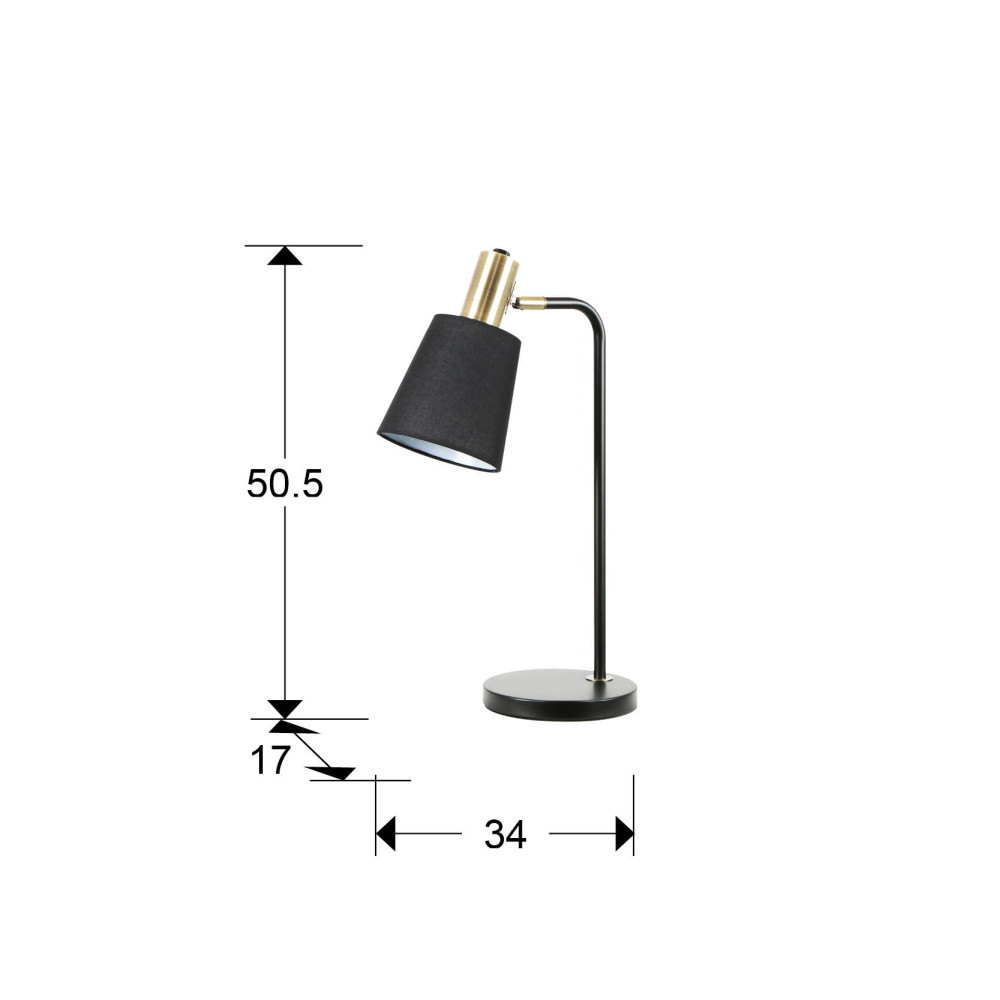 Sobemesa 505 cm acabado en negro mate y latón satinado 1E27 (no incluida).