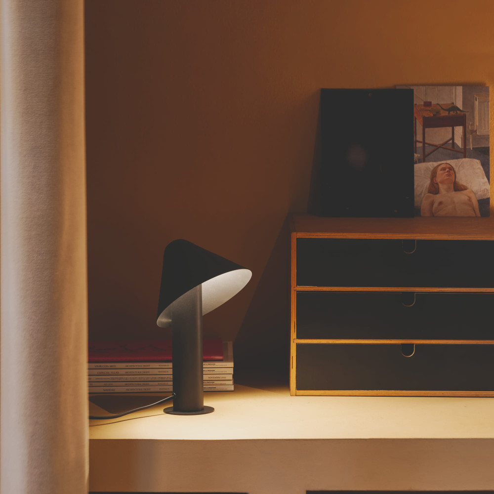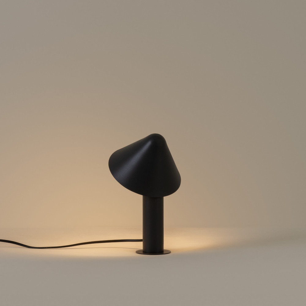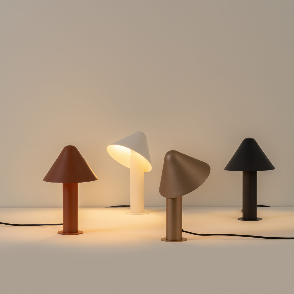 Shita emerge sobre una superficie como una seta crece en el bosque. Su diseño orgánico en conjunto con su material, el acero, conforman una lámpara minimalista y elegante que brilla en cada rincón. Su pequeña forma inspirada en la naturaleza nos invita a jugar con su pantalla, gracias a su imán integrado podemos moverla para dirigir la luz y construir pequeñas atmósferas. Shita se adapta a diferentes espacios arropándonos con su calidez.