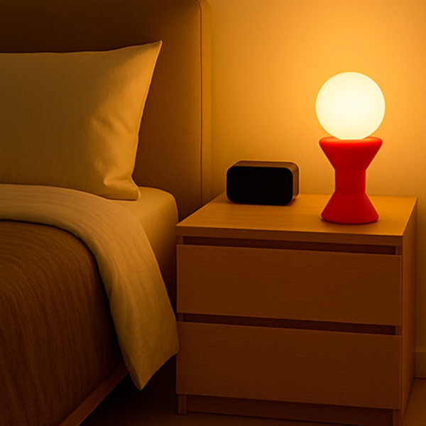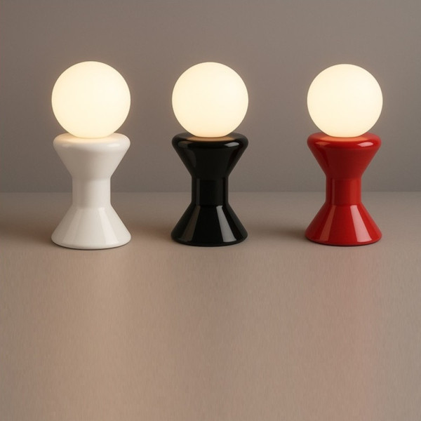 Lámpara de sobremesa con un diseño inspirado en las piezas del ajedrez, que destaca por su equilibrio entre forma y elegancia. Su cuerpo de cristal soplado, disponible en color blanco, negro o rojo, aporta un toque distintivo y decorativo, mientras que el difusor en cristal opal triplex ofrece una luz suave y uniforme, ideal para crear ambientes acogedores y sofisticados.