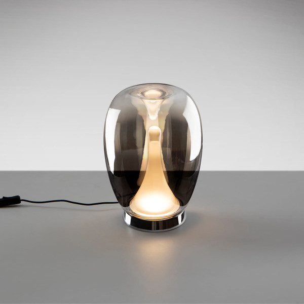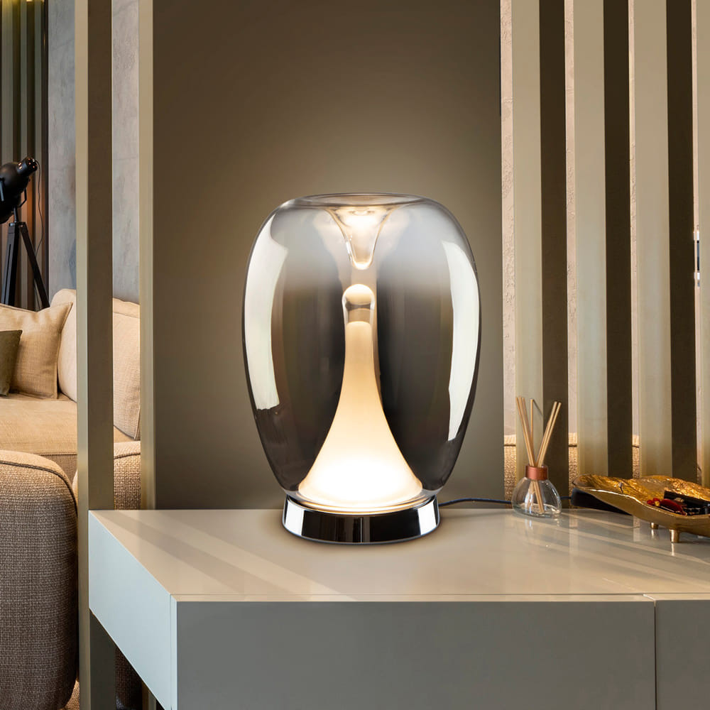 Colgante de Ø18cm con tulipa de cristal acabado smoke y difusor interior opal. 15W, 900lm, 3000K
