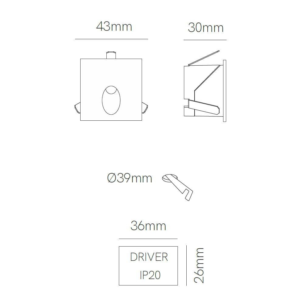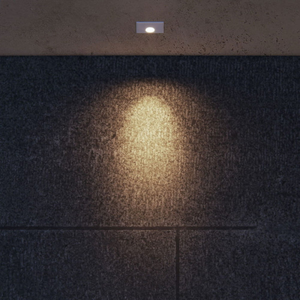 Señalizador-baliza LED empotrable cuadrado blanco, ideal para escaleras o caminos. 2W, 3200K/4000K, IP54, 90/96lm