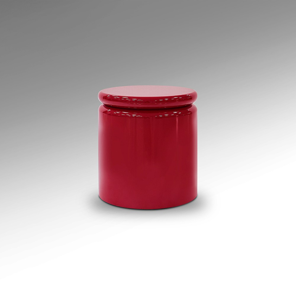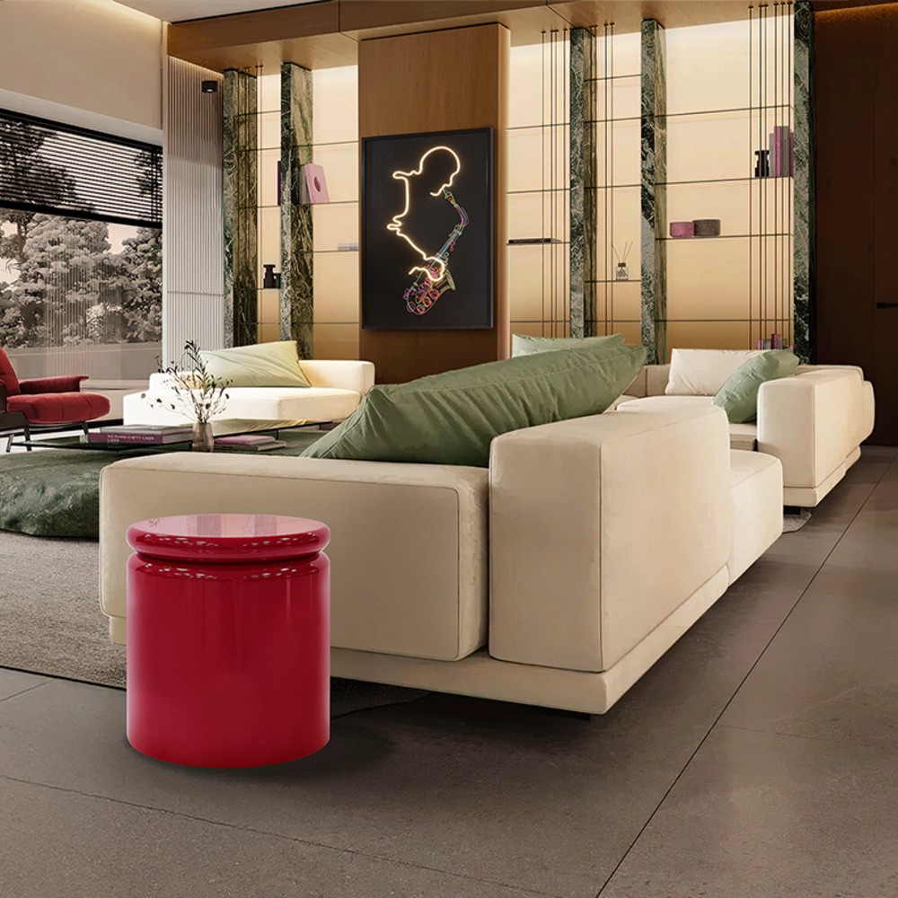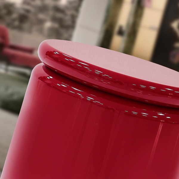 Mesita auxiliar redonda, realizada en DM, acabado rojo brillo.