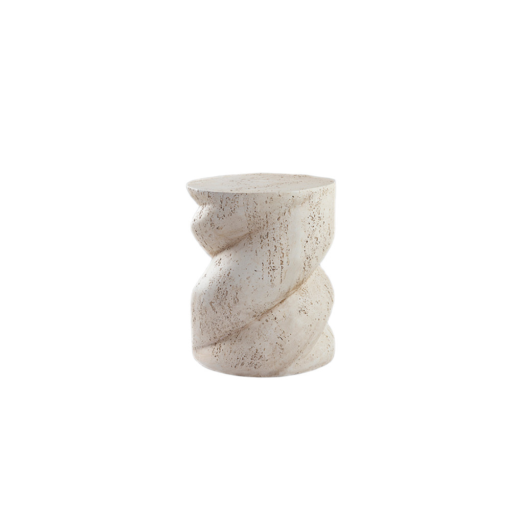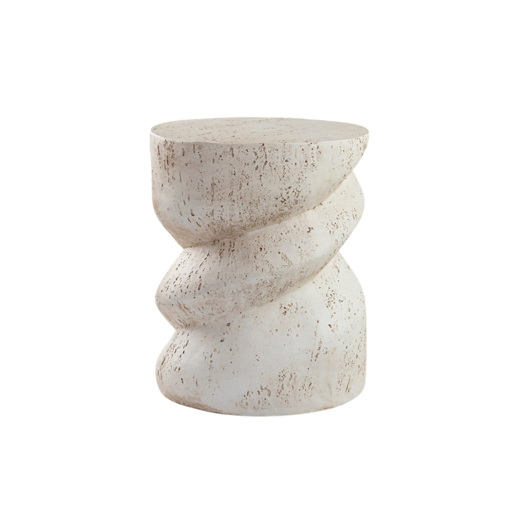 Mesita auxiliar realizada en OMG (magnesio moldeado), textura cemento, acabo blanco mate.
