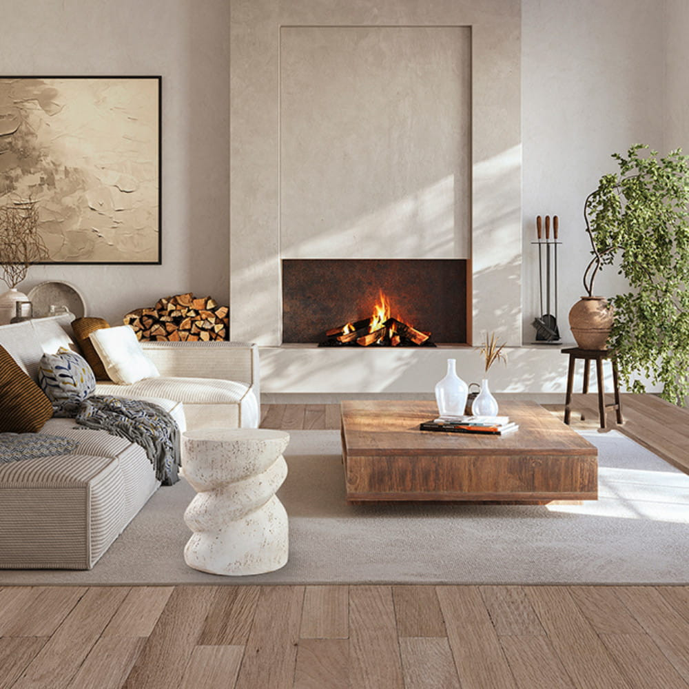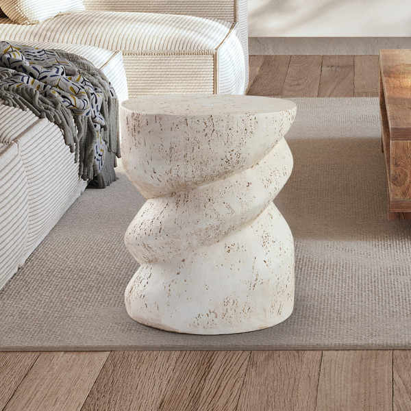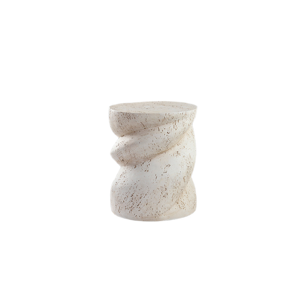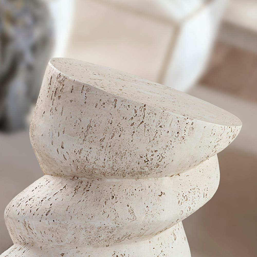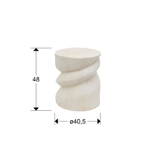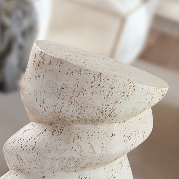Mesita auxiliar, realizada en óxido de magnesio moldeado, textura cemento acabado blanco mate