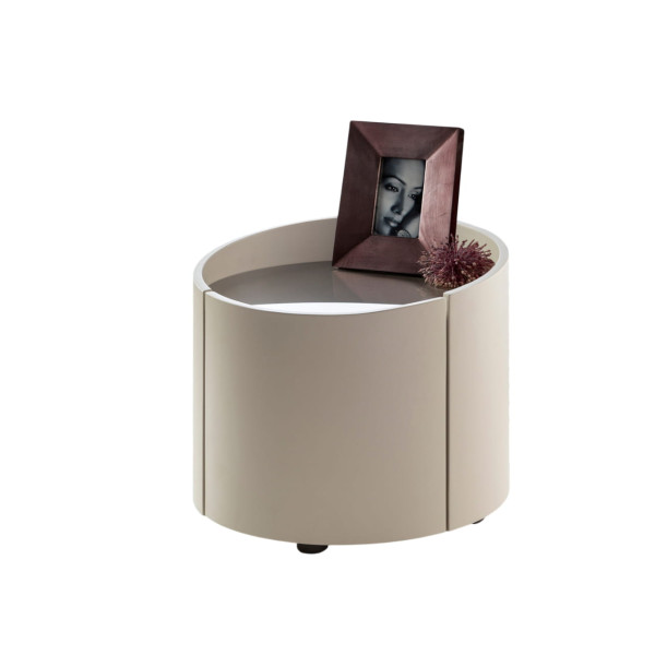 Quick view SCHULLER IZA Mesita de Noche Caqui Claro Precio regular 566,28 € -33,95% Precio 374,00 € Mesita de noche redonda, cajón con guías. Madera contrachapada acabado caqui claro y tapa de cristal smoke. Añadir al carrito