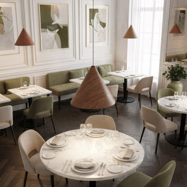 Pantalla nogal de Ø33cm de díametro madera natural.