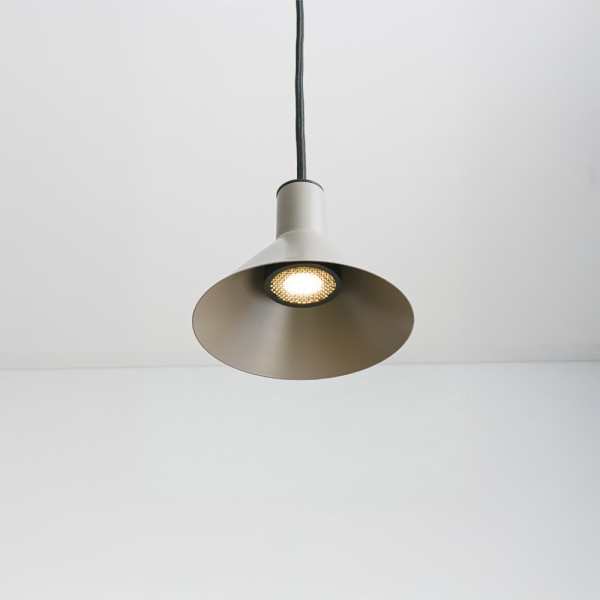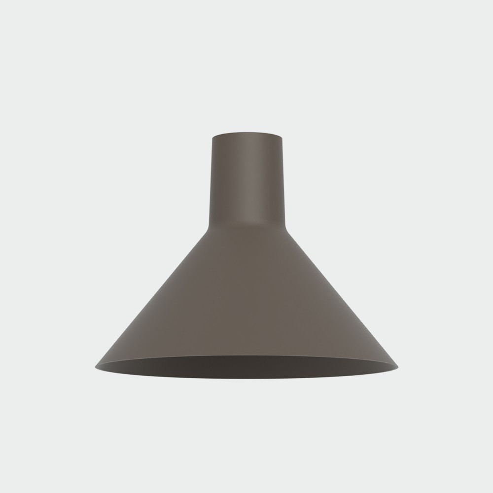 Pantalla cónica de Ø16cm fabricada en metal y acabado gris mate.