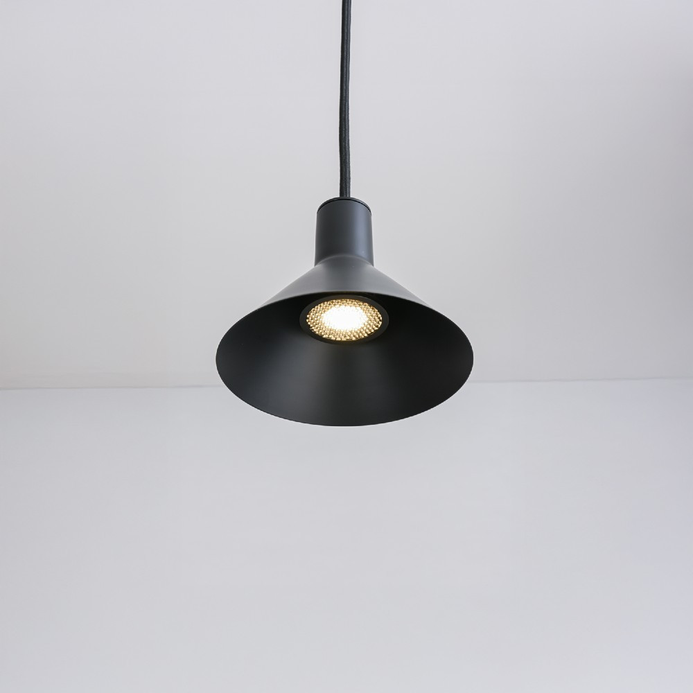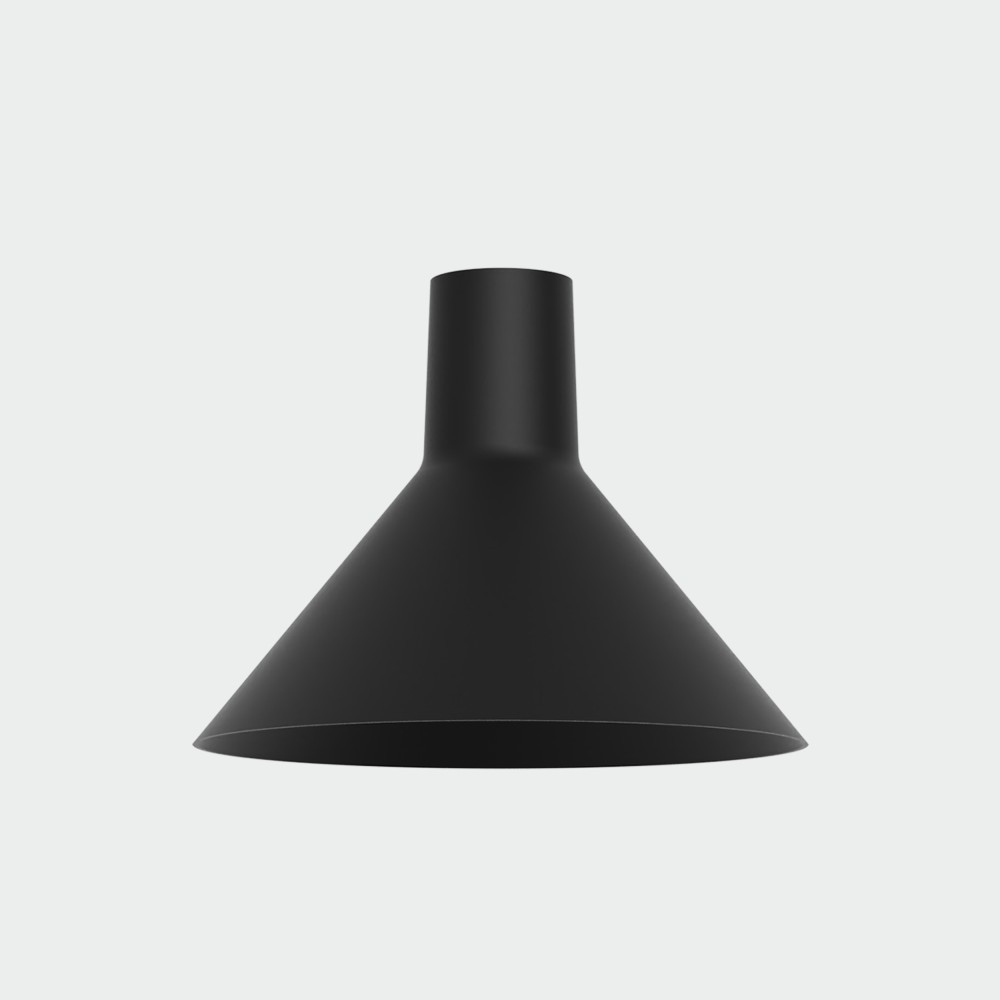 Pantalla cónica de Ø16cm fabricada en metal y acabado negro mate.