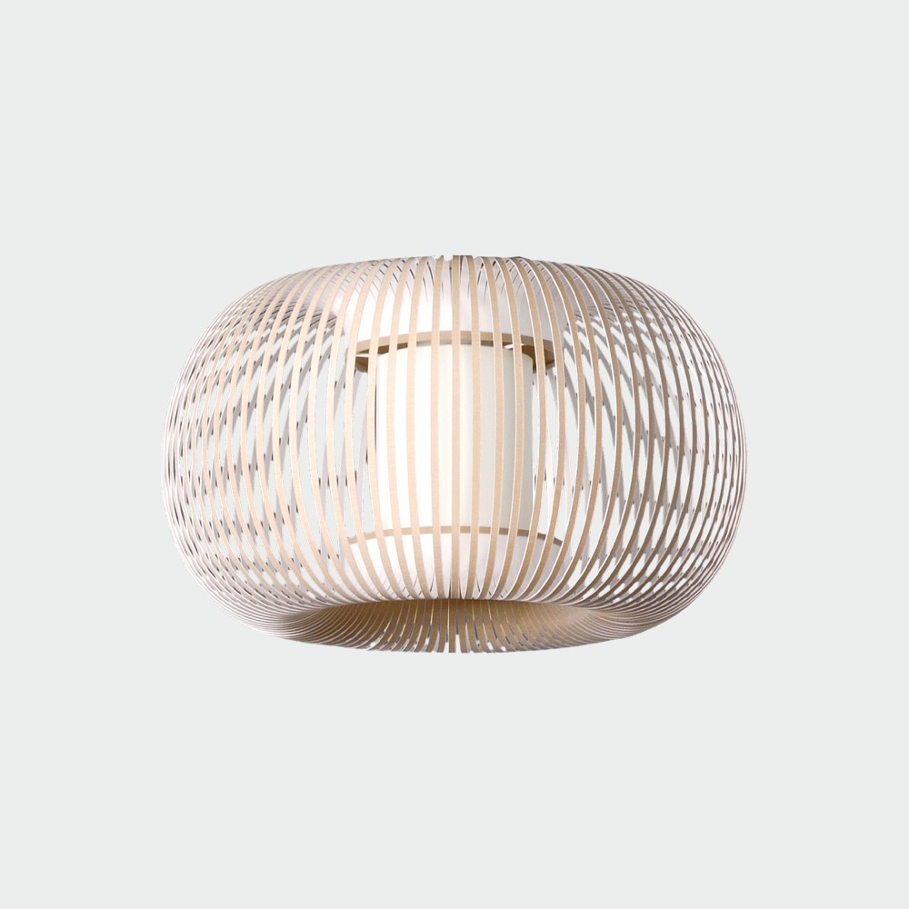 MIRTA es una pantalla para estructuras colgantes con casquillo E27. Fabricada en textil y acrílico con acabado en piedra.