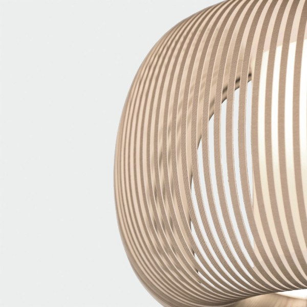 MIRTA es una pantalla para estructuras colgantes con casquillo E27. Fabricada en textil y acrílico con acabado en piedra.