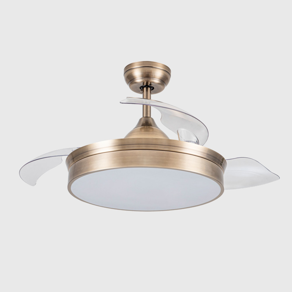 Ventilador de techo cuero con aspas desplegables motor DC LED 72W CCT