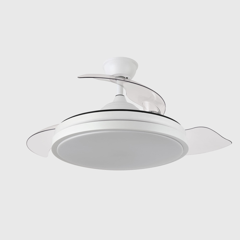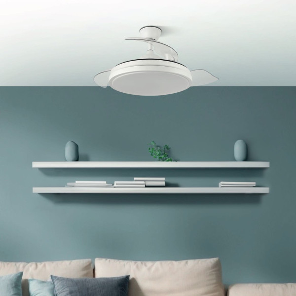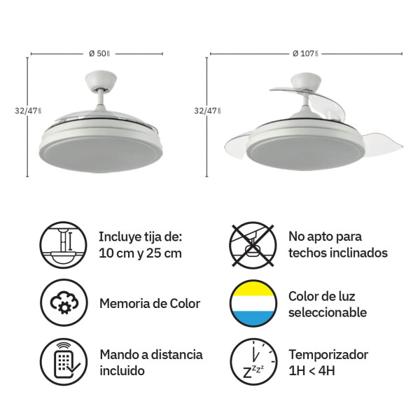 Ventilador DC Blanco 3 aspas retráctiles 107cm 59W 5960lm CCT mando + temporizador + memoria