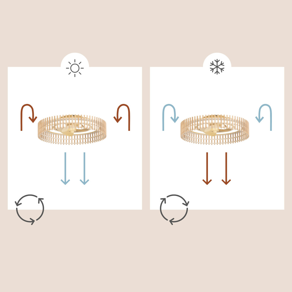 Ventilador Bambu ø610mm IP44 LED TW 2700-6000K imitación madera 4370lm
