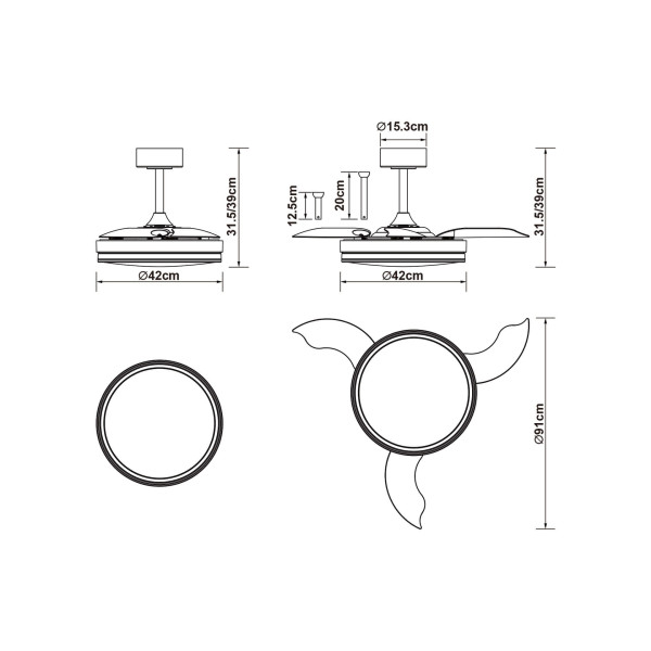 Está diseñado con aspas retráctiles que se pliegan y se despliegan con elegancia, ofreciendo un diseño dinámico y versátil que se adapta a cualquier ambiente. Disponible en dos tamaños, este plafón se integra perfectamente con una amplia gama de estilos de decoración.