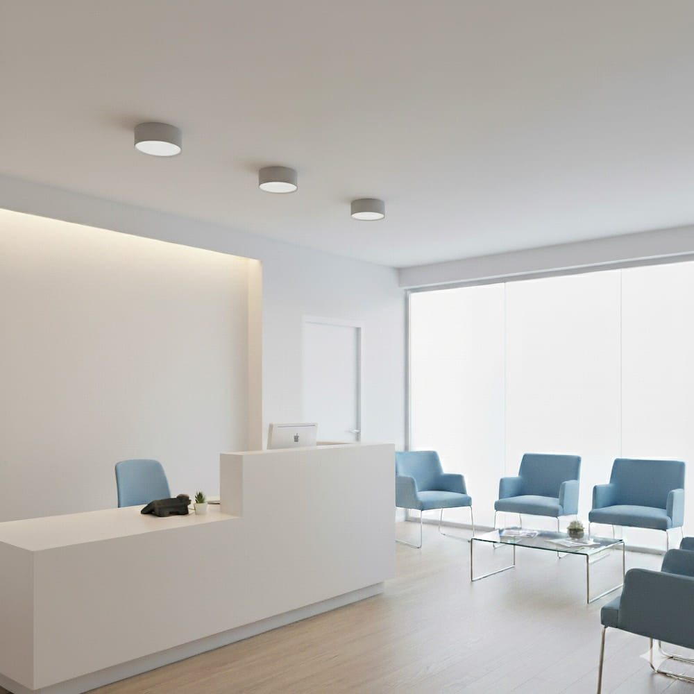 Disponibles en acabados Blanco y Negro texturizados, estos plafones se mimetizan con el techo o generan un elegante contraste visual según las necesidades del interiorismo.