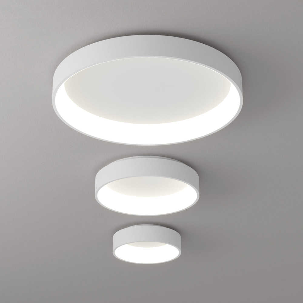 DILGA es una lámpara plafón led para iluminación interior. Fabricado en metal y acrílico con acabado en blanco texturado.