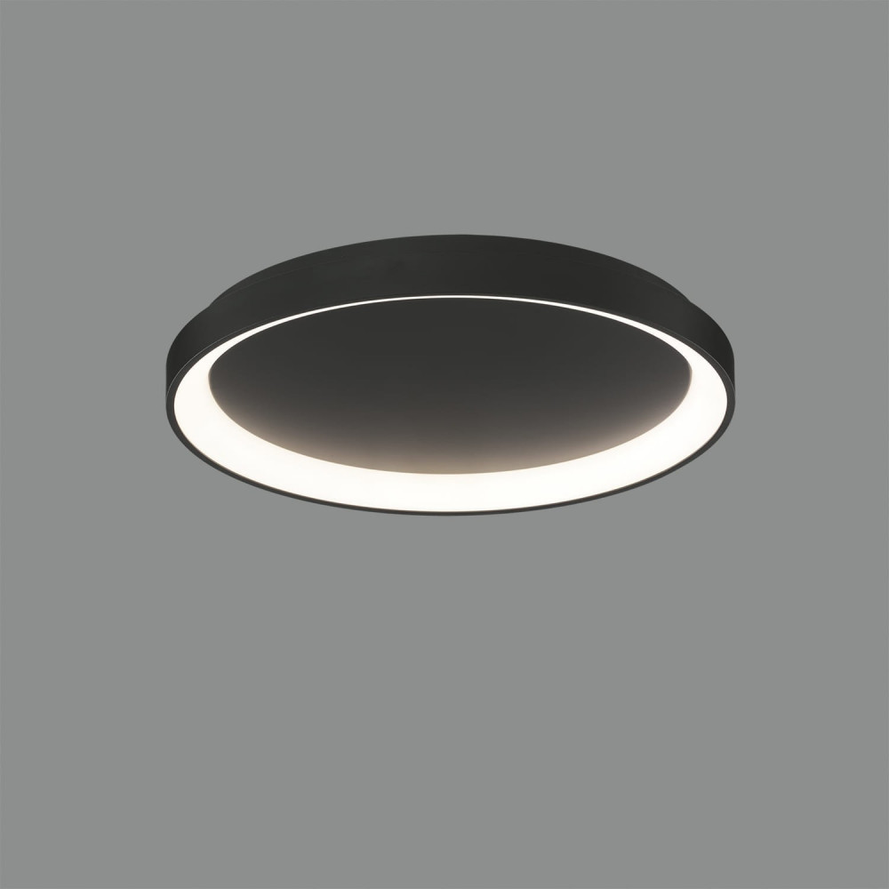 Grace es un plafón de techo negro LED con regulación DALI/PUSH para iluminación interior. Fabricada en metal con difusor acrílico con acabado en negro texturado.
