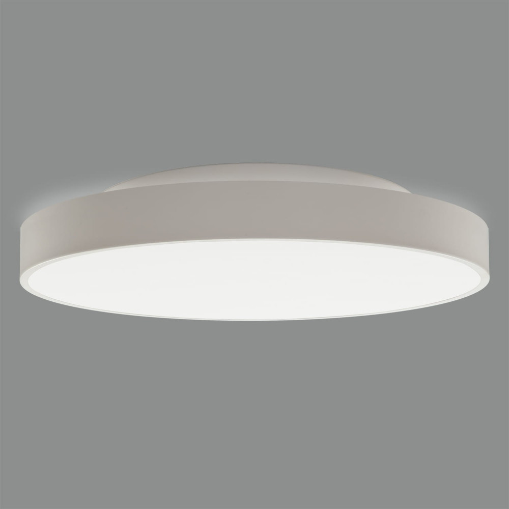Plafón de techo LED blanco texturado fabricado en metal con difusor acrílico opal.