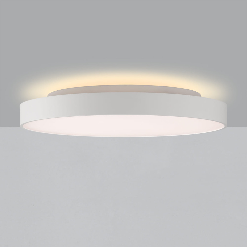 ROMA es una colección de plafones de techo con iluminación inferior directa e iluminación superior indirecta. Disponible en blanco texturado o negro texturado y en dos tamaños: Ø40cm y Ø60cm.