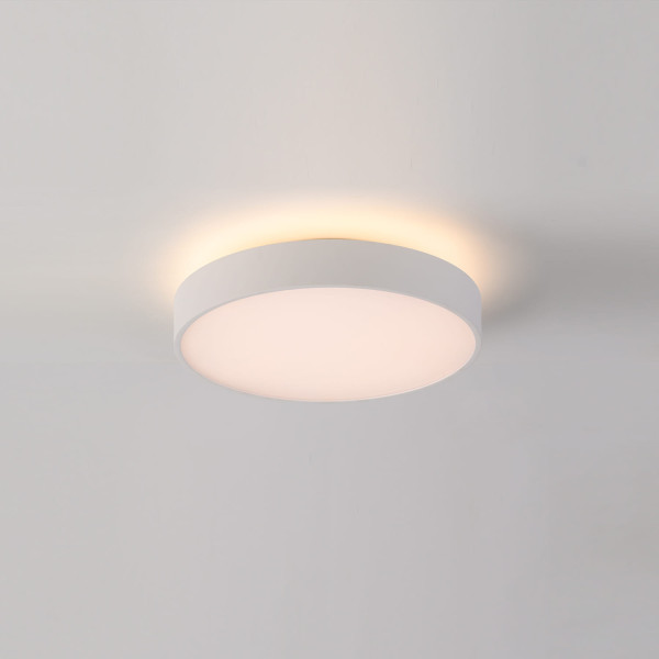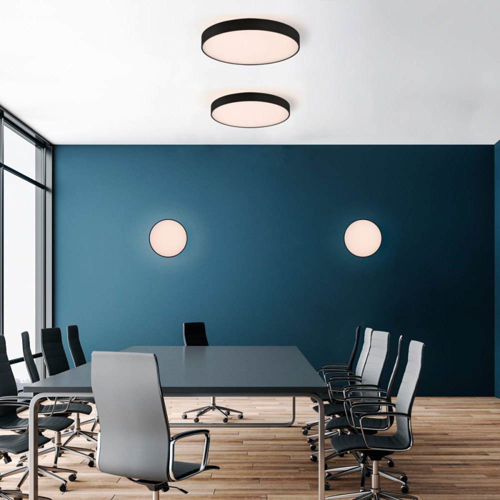 ROMA es una colección de plafones de techo con iluminación inferior directa e iluminación superior indirecta. Disponible en blanco texturado o negro texturado y en dos tamaños: Ø40cm y Ø60cm.