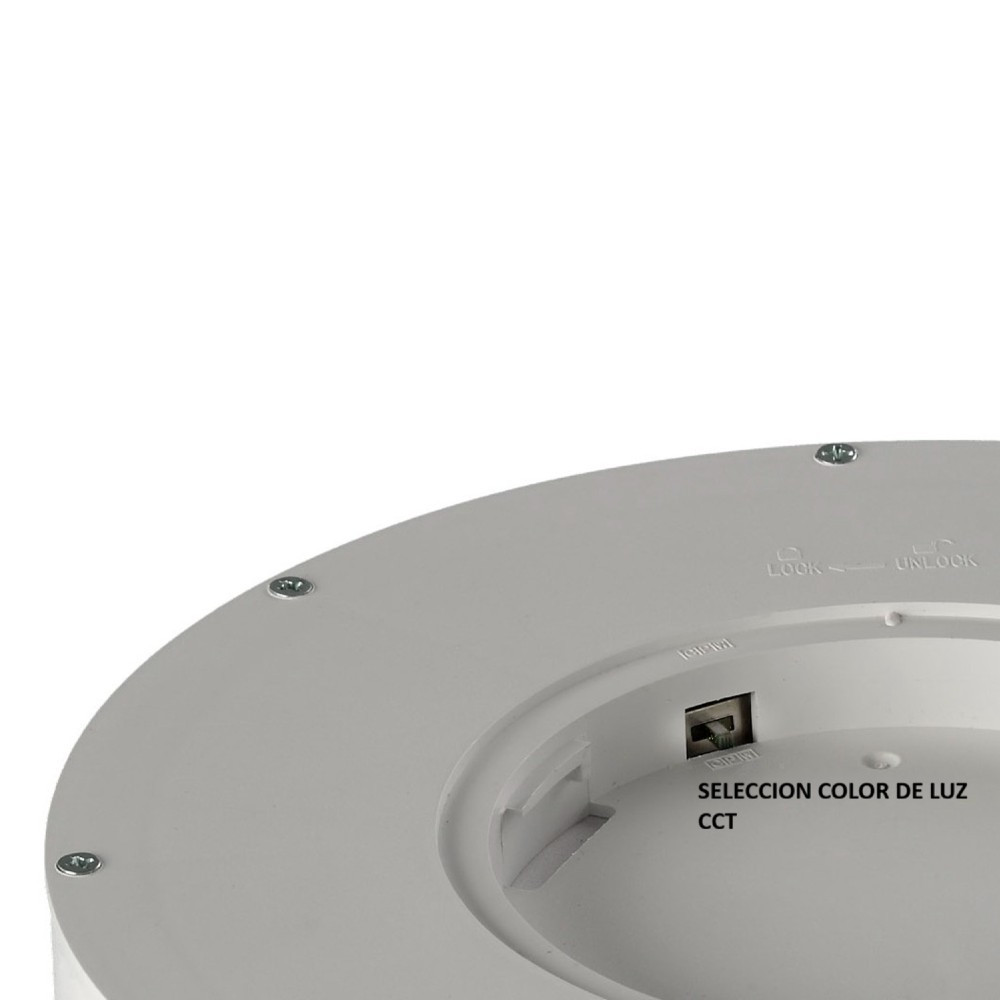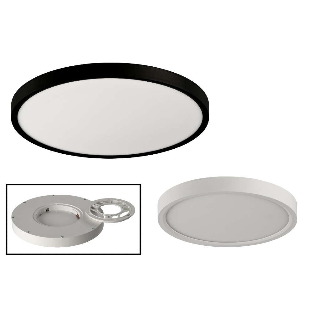 Plafón led de Ø400 mm disponible en blanco o negro mate led 36W 3600lm CCT IP40. Instalación en superficie. Selector de color en tonalidad 3000-4000-6000k.