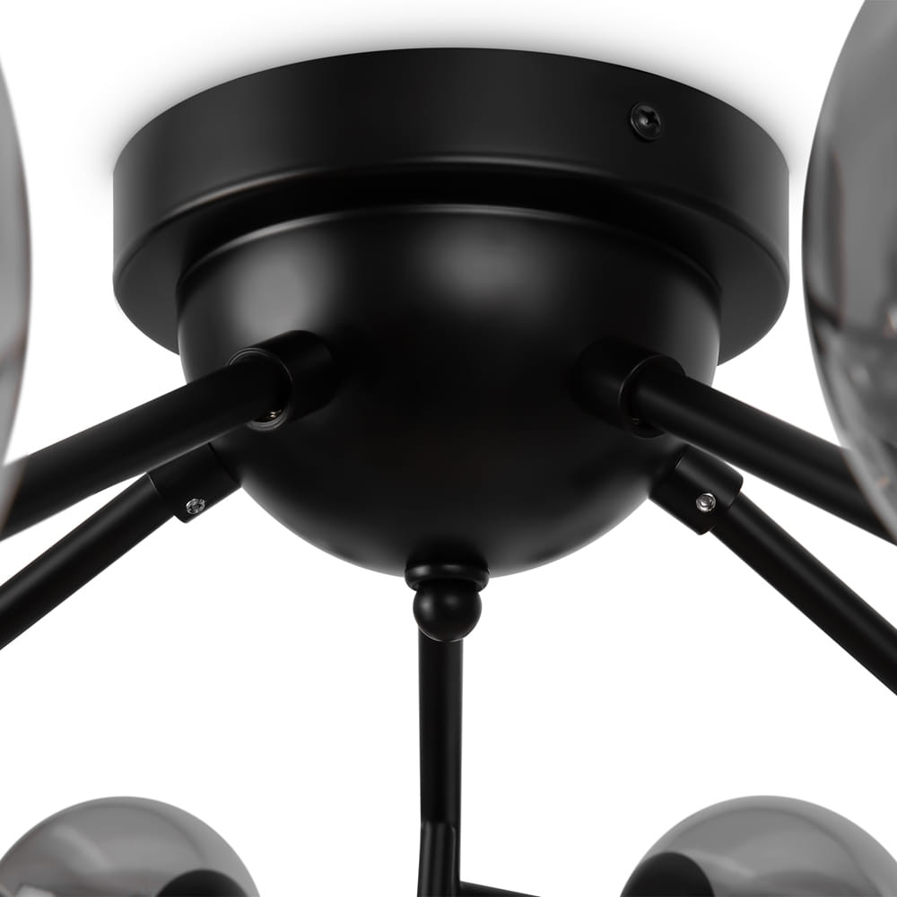 Plafón de techo fabricado en metal acabado negro con 20 tulipas de vidrio smoky. 20 x G9 LED (no incl.)