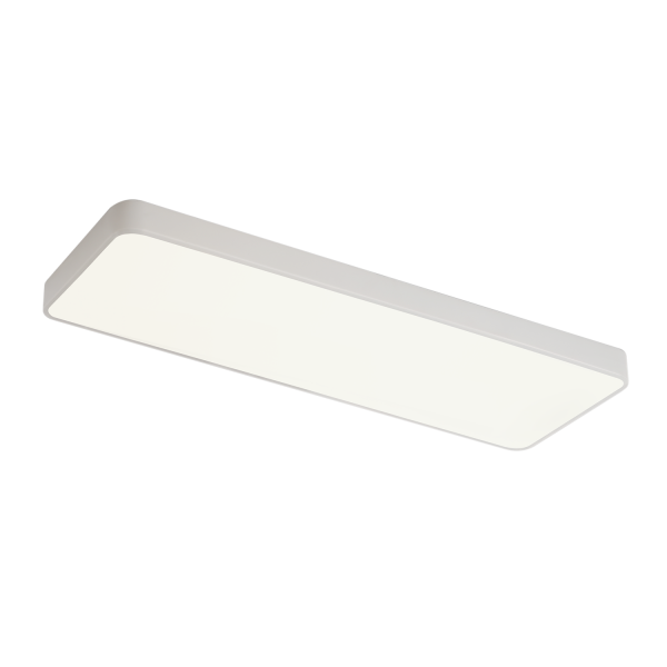 Estructura de aluminio y metal pintado en negro arenado, difusores de acrílico blanco satinado.
