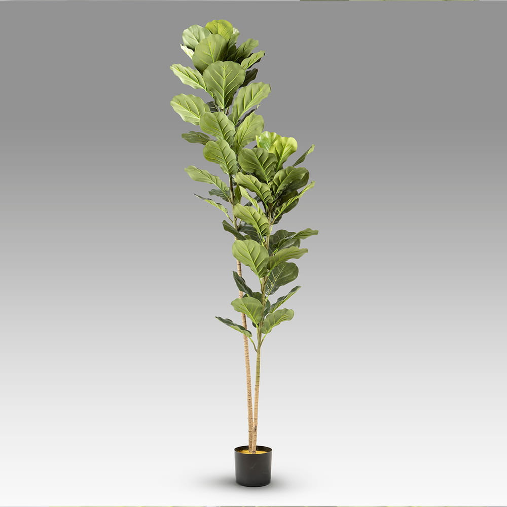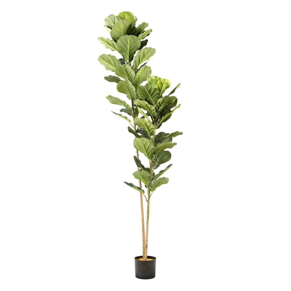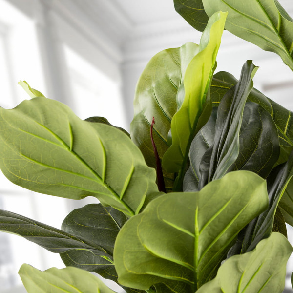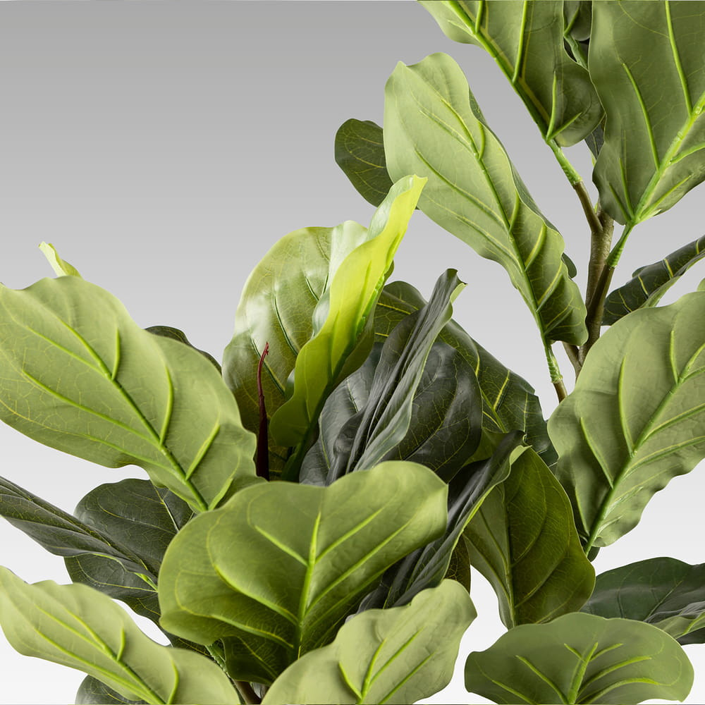 Ficus lyrata o higuera de violín, planta artificial realizada en PVC y metal. Incluye base de cemento y maceta (Ø17 x 15 cm).