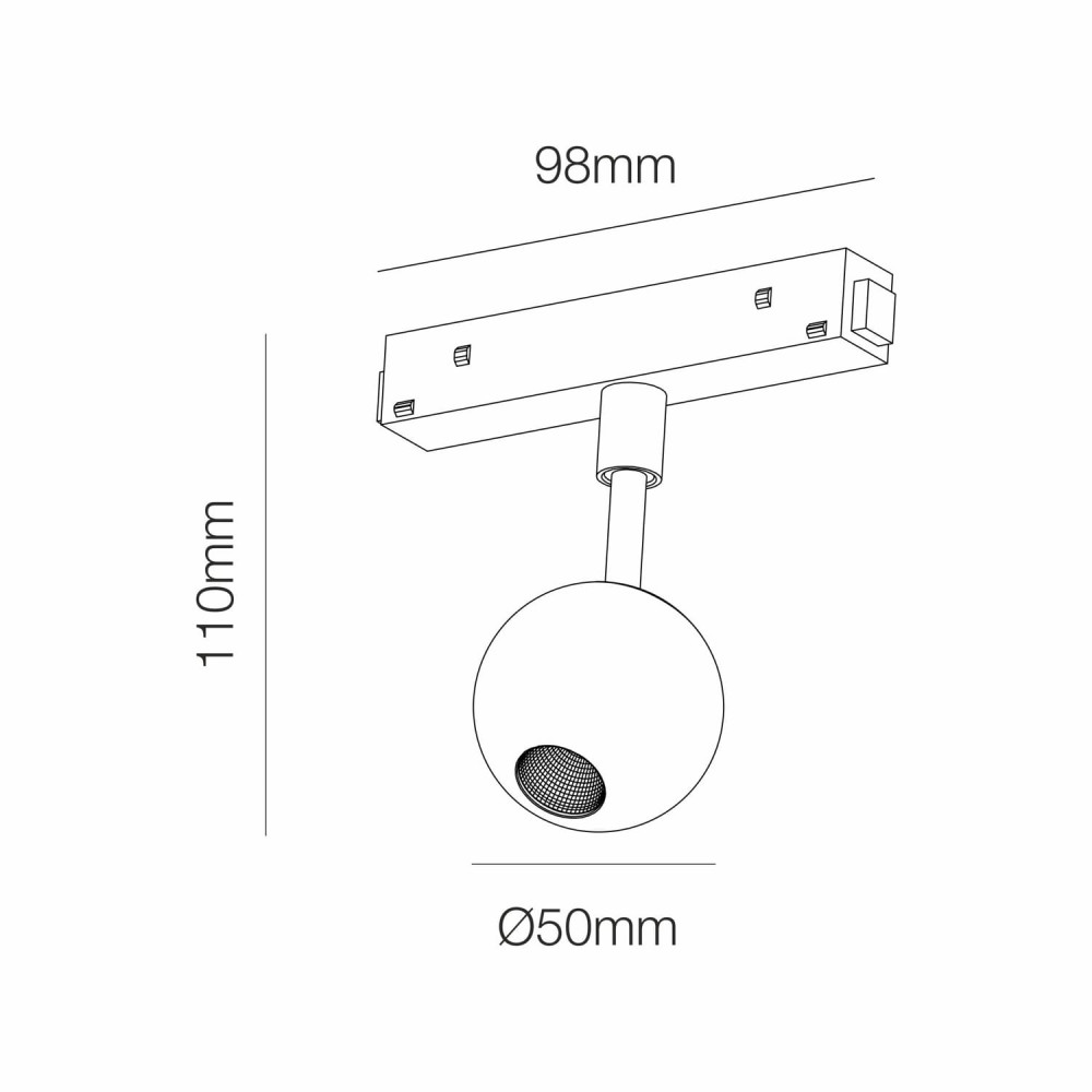 Bora 48V es un foco led decorativo de interiores con diseño esférico minimalista para carril magnético de 48V con una potencia de 4,5W y 8,5W y un haz de luz de 38º de apertura lumínica. Cada pieza de la colección Bora 48V es movible dentro del carril magnético, funciona por imantación, por lo que se enciende al entrar en contacto con el carril aportando discreción y elegancia.