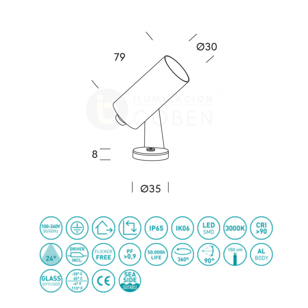 Preparada para resistir entornos exigentes y condiciones cercanas al mar, es una solución versátil y robusta para poner en valor arquitectura, vegetación o recorridos exteriores con precisión y confianza.