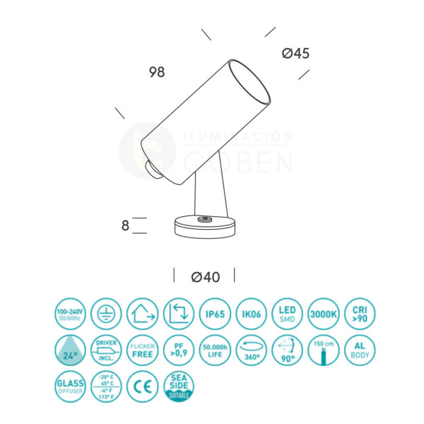 Accesorio visera anti deslumbramientos antracita para el proyector Mexico 9 de Hoff Light