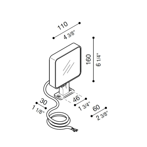 Adecuado también para exteriores. Cuerpo y articulación de aluminio fundido a presión; elevada resistencia a la oxidación gracias al tratamiento de pasivación a base de circonio y a la pintura con resinas de poliéster estabilizada con rayos UV. Difusor de vidrio templado y serigrafiado. Reflector de aluminio. Suministrado con 1m de cable de alimentación H05RN-F-precableado. Juntas de silicona para mantener el grado IP66. Pernos de acero inoxidable A4. Regulación de la inclinación a 180°. TAG 110 con bolsa desecante de elevada capacidad higroscópica.